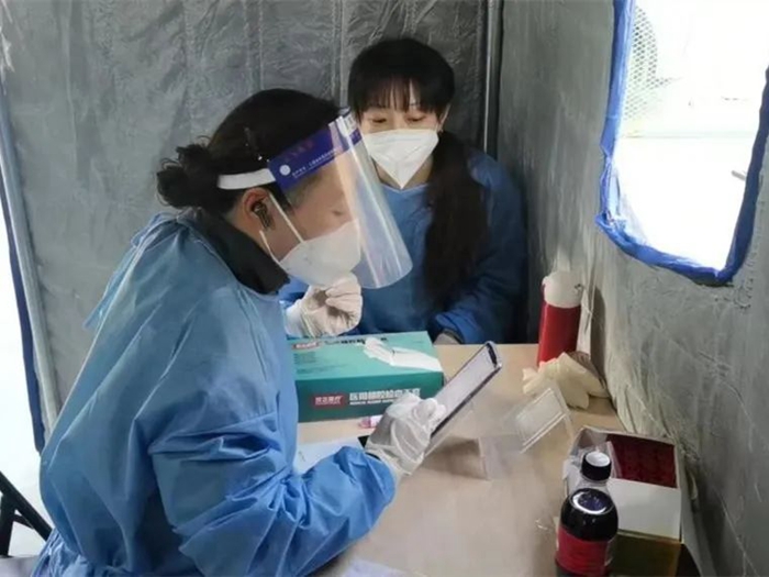 居家辦公的第二周,我主動聯系社區居委會,要求參加防疫志愿工作,不久就接到了居委會的電話,我被安排到核酸檢測一線。穿防護服上陣,作為核酸工作者之一,掃碼確認身份信息、發試劑盒。第一次要成為大白,有些好奇,有點開心,但更多的是自豪,非常時期可以為大家做點事情,感覺很榮幸。穿上防護服的時刻,一種使命感油然而生,感覺醫生這個職業更加神圣了。這幾天氣溫不算高,但穿上防護服后感受到了“保溫”的含義,口渴的時候還得忍著,因為大夫說要注意安全,不能亂動。連續幾天的工作, 各種人都見過了,有發牢騷的、有不理解的,但更多的是友善的問候、謝謝的言語,雖然聽到牢騷話心里不開心,但每每聽到一聲“你好”或“謝謝”,心里所有的不愉快都煙消云散了。