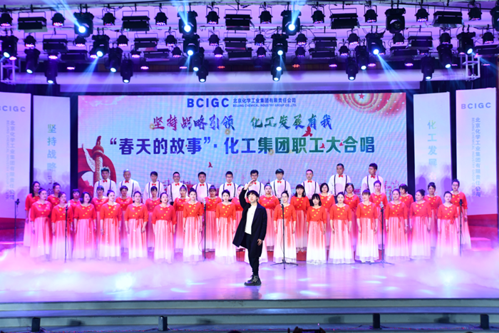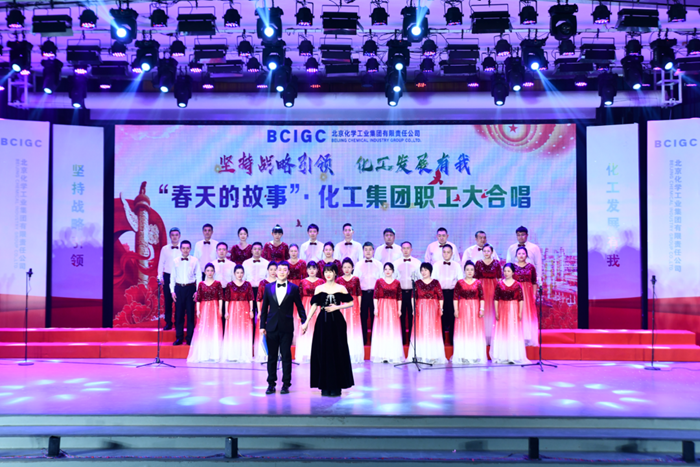 表彰會(huì)議結(jié)束后,以“堅(jiān)持戰(zhàn)略引領(lǐng) 化工發(fā)展有我”為主題的“春天的故事”·化工集團(tuán)職工大合唱拉開序幕。