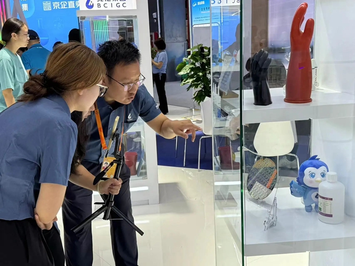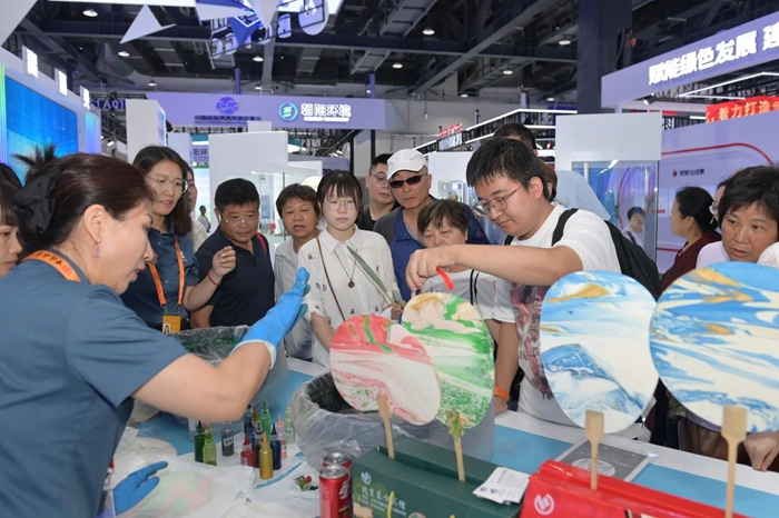 本屆展會,北京化工集團還創新性的將集團部分產品與文化創意緊密融合,設立“丙烯酸酯聚合物乳液”漆扇制作、“橡塑制品+502膠”創意包裝產品線上線下售賣等環節,吸引大量觀眾前來打卡并紛紛點贊。
