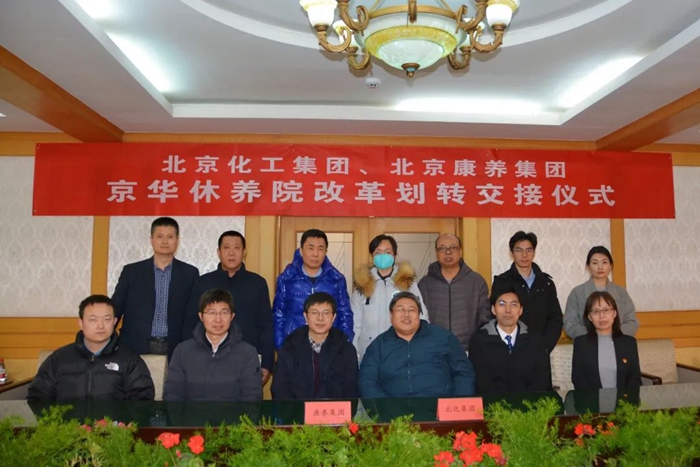北京康養集團副總經理秦有明、副總會計師秦磊,北京化工集團北化房地產公司黨總支書記、董事長高振宇,集團相關部室負責人出席交接儀式。北京化工集團與康養集團代表在劃轉資產及有關資料清單上簽字,雙方還與自愿安置到康養集團的職工簽署了新的勞動合同。
