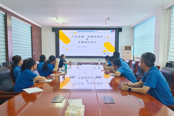 為進一步提升青年職工質量意識,強化質量管理水平,9月21日,華騰橡塑安徽華騰公司以青年實訓基地為平臺開展質量標準專項培訓。安徽華騰質量部部長吳琴梅圍繞生產流程、生產全過程檢驗、產品質量檢測等多方面內容,結合實際案例進行了詳細講解。